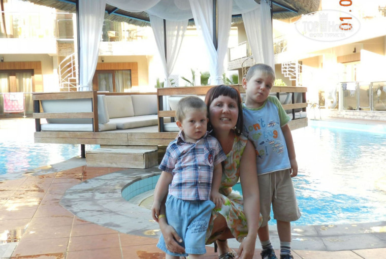 Мы отдыхали в этом отеле 29.08-06.09 с малышами 3 и 5 лет. Летели из Перми, прибыли в отель около 5ти утра, самая большая ошибка, потому что заселили только в 13 часов, на заметку это очень тяжело после дороги скитаться где то еще по холам, когда хочется просто всполоснуться и поспать пару часов. Сначала одели на нас синие браслеты и сказали что заселение днем, мы пошли на диваны в холе, младший уже давно спал, он вырубается у нас в любом случае.Вот мы лежим на диванах, подходит человек с ресепшена и нам срезает синие браслеты и говорит вы же типа Вип и зацепляет желтые, а я ему что лучше бы заселяли по приезду. У нас было размещение в Селекте.