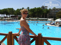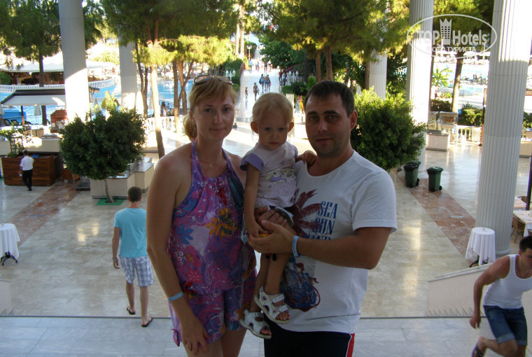 Пару дней назад вернулись с Турции. Отдыхали там семьёй (2 детей - 1г.8 мес и 10 лет) впервые, с друзьями которые уже бывали в Турции, но в другом отеле. Период отдыха с 29 августа по 6 сентября (8 ночей 9 дней). Автобус довез очень быстро (около часа езды) от аэропорта до отеля, а может так показалось, т.к. гид очень интересно рассказывал о Турции. На ресепшене отметились, одели браслеты , оставили вещи на диванчиках и пошли на завтрак. Зашли сразу в крытый ресторан, так как ещё не знали, что на улице тоже готовится еда, в часности каши молочные, которые я искала для ребенка. Позавтракав, пошли снова на ресепшн, чтобы узнать дали ли нам номер. Номер нам приготовили, хотя время было около 9ти часов, а заселение как известно в 12. Номер был чистый, уютный на первом этаже. Я немного расстроилась ,что 1-ый этаж, так как читала в отзывах, что первые этажи сырые. Ничего подобного, никакой сырости. Номер был в корпусе G, это возле бара Капитана и Релакс бассейна, а до самого моря рукой подать, мы были очень довольны таким расположением. Ну и достав купальники, побежали к морю. Море чистое, прозрачное, теплое. Лежаков много, пляжная территория огромная, места всегда хватало. После моря пошли на разведку территории. Первое, чем поразил нас отель - огромная территория, зеленая растительность, голубые огромные бассейны. Вот так начался наш отдых в World Palace. Отдыхом мы остались больше, чем довольны. Не хватило только пары деньков, чтоб насытиться полностью. Мне очень нравился обслуживающий персонал, особенно их отношение к детям. Проходя мимо ребёнка, они обязательно, что-то скажут ему, пощекочат. Нам дал банан проходящий мимо работник отеля, потом бармен подарил дочке карандашики. Такое внимание очень приятно. Отдельно хочу отметить сауну и крытый бассейн, где мы проводили послеобеденное время, чтоб не сгореть на солнце. У меня там после прыжков в воду, что-то спина заклинила и помогла сауна и джакузи, в котором я массировала позвоночник, и всё прошло. Посещала так же хамам и массаж. Правда пока делали массаж почему-то работал кондер в помещении , и я немного замерзла, потом попросила выключить его.