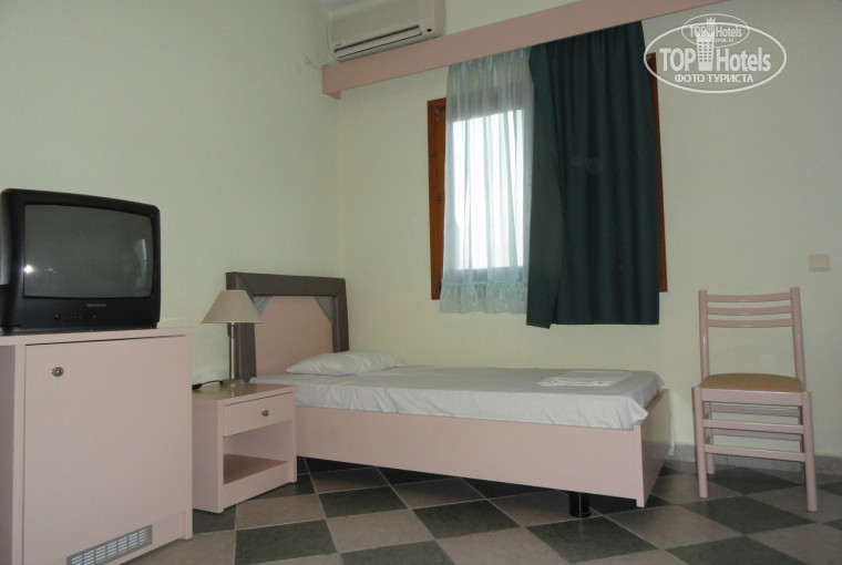 Отдыхали в августе 2012. Отель средней руки, 2 линия. До пляжа около 400 метров. Проход к пляжу отеля Aegean Melathron 5* не совсем простой. Зонтик и 2 шезлонга стоят 7 евро в день. Есть короткий путь, он ведет к магазинчику Exotic, но лестница земляная и очень крутая. Есть и другие варианты, но они удлиняют путь к пляжу. Достоинства пляжа - он песчаный. Этот отель подойдет для недорогого семейного отдыха. Рядом есть пляжи других отелей и дикий пляж. Туроператор у нас был греческий - Музенизис Трэвел. Для тех кто берет питание Завтрак + Ужин должны учесть, что соки, вода и спиртные напитки - платные. Стакан сока в отеле (2,20 евро), вода 1,5 литра (2 евро). Этот недостаток можно компенсировать покупкой воды в магазинчике (вода 9 литров - 2 евро, сок 1 л - 1,40 евро).