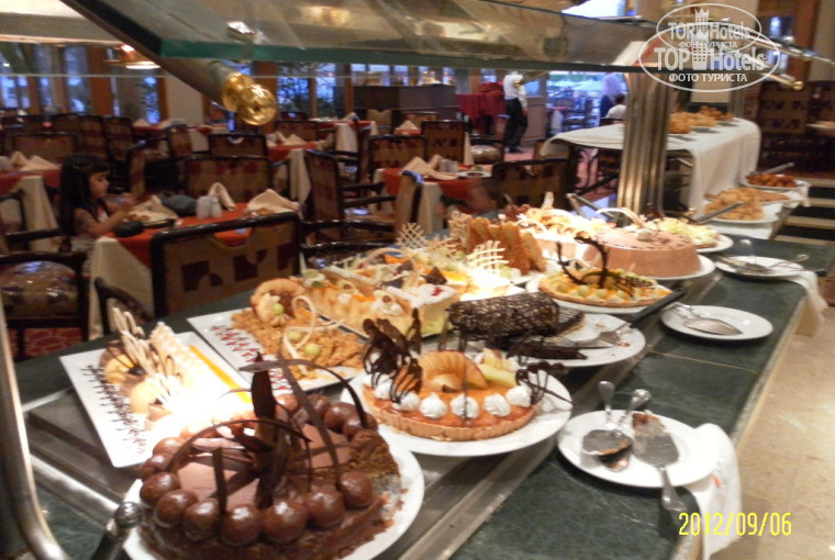 Питание:достаточно разнообразное:несколько видов супов,гарниров,каши,хлопья,молоко,йогурты,рыба,курица,мясо,пицца.Выпечка вообще отдельная тема.На ужин только пироженых было видов 10,не считая всяких слое,джемы,соусы....На территории три ресторана:итальянский,восточный,европейский.Всегда можно было разнообразить свои завтраки,обеды и ужины.каждое утро при тебе готовили омлет и блинчики.