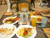 Питание. Всё безумно вкусно, перепробовать всё не успели) Я например отвёл душу на мясных блюдах, очень вкусно готовят картофель. Жена больше поднажала на рыбные и грибы. Десерты очень разнообразные, все очень вкусные, каждый день минимум 2-3 вида новых сладостей, Не понимаю почему у нас не могут готовить так же. Всегда много фруктов, апельсины, бананы, арбузы, дыни, персики, сливы, виноград. Из напитков: Кола, Фанта, Спрайт, Швепс, соки, чай, кофе. Алкоголь местного производства включён, мы лично пили коктейли, хорошие разнообразные. Отдельно хочу отметить снек бары (У главного бассейна, в аквапарке и на пляже), Классные пиццы, различные гамбургеры чизбургеры и тому подобный ассортимент, Макдональдс отдыхает. На пляже очень нравился гриль, куриные ножки гриль или шашлычки просто таяли во рту.