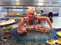 Гостиница очень приличная.Отдыхали с тремя маленькими детками- очень понравилась детская анимация.Особенная благодарность аниматору Виктории.Очень хорошая,приветливая - свою работу выполняет на все 100 %.А также она проводит утренею гимнастику, водную аэробику и степ аэробику. Интересно откуда у нее столько энергии??????Спасибо тебе огромное.Очень понравилась кухня - огромный выбор еды, сладостей, фруктов, напитков.Красивый номер - ежедневно убирают.