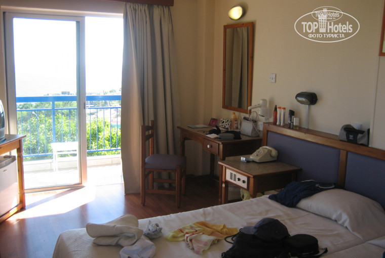 номер: нам повезло - был с видом на море (201), просторный, удобный, правда, в ванной комнате была душевая, с сантехникой все было в порядке, кондиционер работал, но с трудом, днем прохладу чувствовали только при выставленной температуре 10 градусов, единственный минус, не очень хорошо вытирали пол, а я не взяла тапочки (обычно в поезд беру, а в этот раз решила не брать), ходили в номере в обуви, не очень удобно, горничные приветливые, персонал отеля - тоже, приветливые, доброжелательные, как-то на ресепшн поинтересовались автобусом до Ларнаки, нам дали буклет с информацией,