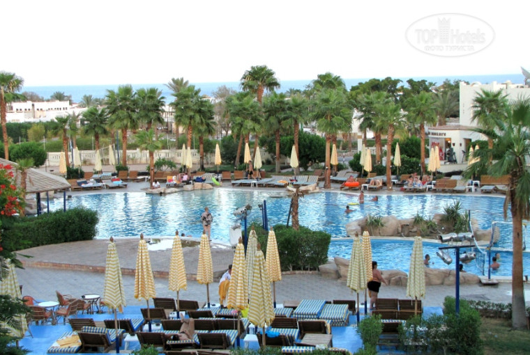 В отель приехали в 9 часов утра, мы знали, что заселение в Египте не ранее 14:00, поэтому на рецепшн попросили взять чемоданы в комнату хранения. Хотелось, чтобы отдых был без негатива и я сразу же подошёл к русскоговорящему администратору на рецепшн(молодой парнишка метр с кепкой) и объяснил ситуацию со свадебным путешествием, дав ему 10 $ попросив хороший номер, на что получил ответ – ждите. Браслеты одевать не хотели до заселения и мы пошли в город за водичкой и в разведку на море, на пляж ShoresAloha без браслетов не пустили и мы направились на городской. Сразу же впечатление испортилось т.к. везде рядом с пляжем валялись бутылки и мусор, но в Шарме нет коммунальной службы и местные не знают слова мусорница. К полудню вернулись в на рецепшн и немного подождав попросились вежливо одеть нам браслеты, мол со вчерашнего не кушали, а уже обед и нам их сразу же одели. Пообедав вернулись на рецепшн и нас повели в номер. Дали 248 номер, на втором этаже, балкон выходит на большой бассейн и сцену, неплохо видно море и остров Тиран. Парниша с рецепшена потом весь отдых при встрече говорил «Хорёший номер, наш начальника при приезде живёт в нём», ну типа дай ещё денег. Номер хороший, всё прекрасно работало, уборщик каждый день готов был убираться, но мы ему сказали чтоб наводил порядок через день сутра, пока мы на море, оставлял ему по 1$, думал что лебедя или крокодила какого с полотенец закрутит, так нифига, по ходу не умеет, в следующий раз я не оставил 1$ и встретив нас он говорит типо «я что, плохо убрал номер, тебе не нравится». В номере порадовало наличие ЖК-телека с 3-мя рус каналами(в их пятёрках обычные кинескопные маленькие стоят), холодильник в тумбочке стола, кстати он стоит на минимуме и еле холодит, есть сверху регулятор, ставьте сразу на максимум. Сейф я сразу захлопнул, не разобрался с его настройками, повесил пластиковые застёжки на ручки шкафа и замок от чемодана, ставил метки на застёжки лаком для ногтей, фоткал в определённом положении замок, никто к нему даже не дотрагивался, в итоге шкаф превратился в огромный сейф.