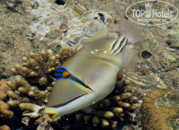 До пляжа 8-10минут ходьбы через пятёрку ShoresAloha, с 9:30 начинает курсировать автобус, но мы плотно покушав почти всегда прогуливались пешком. Море конечно же это самое лучшее, что есть в Египте, коралловый риф кстати один из красивейших, плавал на соседние, один из которых городской, а второй пятёрки ShoresAmphoras – не понравились. С поверхности обычное синее море, но когда опустил голву первый раз, у меня сразу шок, рыбы как художником разрисованные и все крутятся в упор перед тобой, красотища неописуемая. Обязательно берите с собой подводные фотики(боксы), трубки-маски-ласты, в супермаркетах трубка+маска не более 10$, гермопакет для мобильника или мыльницы 20-25$, за тапочки для ходьбы по пляжу более 5$ не давайте. Я почти не загорал и по 2-3 часа плавал, часики воду почти всегда показывали +29, прозрачность воды30-40метров. Вход в воду с понтона, 2 лестницы, и сразу же 6-8 метров обрыв, так что это вам не Турция и не Крым, вода настолько солёная, что вас буквально на ней держит, утонуть почти не реально. Брал с собой мощный подводный фонарь, нырял в сумерках, все твари ночью подымаются со дна на поверхность, мурены крутятся рядом, крылатки, скаты, метровые каранксы, если кто смелый то тоже попробуйте. Есть дайвинг-центр на пляже, одно получасовое погружение стоит 50$, но инструктора не знают русский, только на английском, опускают до 15метров. Лежаков на берегу всегда с запасом, занимать пораньше не нужно.
