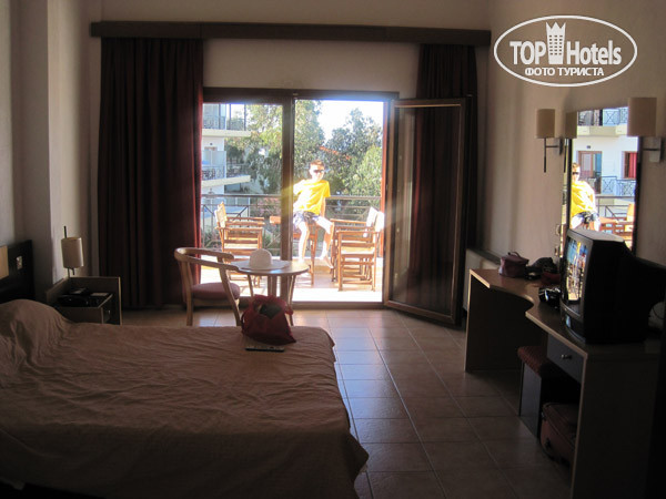 В Европе 4 звезды, это полные 5 Турецких или Египетских! Отель советую для спокойного семейного отдыха, хотя очень много детей. Две девушки тут бы заскучали (но если совсем без вариантов, то рядом в соседнем отеле есть дискотека 1 раз в неделю). Аквапарк платный по 2 часа в самый солнцепёк работает (поэтому там никого никогда нет). Кормят хорошо тех, у кого браслеты (all), остальные кто на завтрак-ужин обедают или на пляже шаурмой и фри, или едут за 2евро в город на автобусе отеля (ходит каждый час-два), завтрак-ужин не получают напитки на ужине!! Только за деньги (причём 3 евро стоит стакан сока, а на территории отеля в магазине можно купить пакет 1л за 2 евро) или только воду в стакане (но с недовольной рожей официанта). Если просто попросить воды, то приносят бутылку 1,5л за 1,5 евро, поэтому нужно уточнять что вам именно в стакане, тогда бесплатно. Это пожалуй был самый неприятный мелочный момент. Я пожалела, что не взяли all, но зато мы ежедневно ездили обедать морепродуктами в Урануполи (посёлок в 5 минутах езды на автобусе). Остальное всё на очень хорошем уровне!