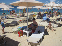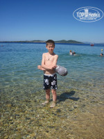 Пляж: очень хороший. Вход первые 2 метра галька, камни, дети "не парились", а вот мы с подругой, изнеженные видимо, ступали ойкая. Но через 2 метра и дальше песочек, вода прозрачнейшая! Заход очень плавный. На берегу песок и редкие гладкие булыжники (дети строили замки, играли с удовольствием). Лежаки платные (но это снова минус только у тех, кто не купил all), но за покупку 1 коктейля в плажном баре (можно не сразу покупать, а в течение дня... или забыть потом... тссс) вам снимают замочек с лежака и вы располагаетесь (а расплатиться можно "later, please" - позже).