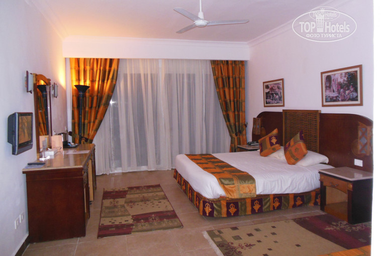 РАЗМЕЩЕНИЕ: В Шарм-эль-Шейх мы прилетели около 20 часов по местному времени (в Египте время отстает от московского на 2 часа), пока проходили паспортный контроль, пока все садились в автобус, пока отвозили туристов в другой отель, в Альбатрос прибыли около 22 часов. (Сразу оговорюсь: берите с собой шариковую ручку! Потому что в аэропорту выдают миграционную карточку, которую необходимо заполнять на английском языке. Ничего сложного, но мы ручку забыли, поэтому предпочли заплатить 40 $ и пройти таможенный контроль быстро, без карточки и очереди). Наш отельный гид, который встречал нас и в аэропорту, привел нас на рецепшен. Все чемоданы оставляются у входа в отель. На рецепшене спросили наши фамилии, одели браслеты и отправили в итальянский ресторан. После ужина мы вернулись на рецепшен, где нам выдали конверт с картой отеля, в котором лежала пластиковая карточка от номера № 469. Мы пошли искать номер, нашли его довольно быстро, номер нам понравился, он был таким, какой мы и просили при подтверждении брони на этом сайте, - с двуспальной кроватью и балконом, на 2-ом этаже. Минут через 15 носильщик принес наш чемодан (если это более отдаленные корпуса, то чемоданы развозят на машинке), мы его поблагодарили и дали 1$.