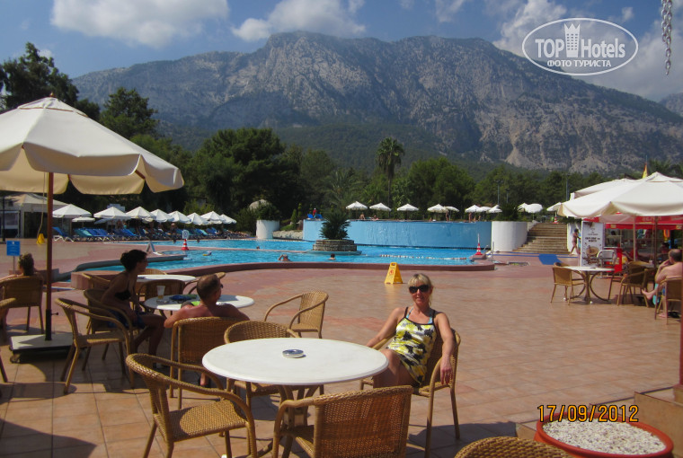 Приехали мы утром, на ресепшен нам предложили сходить покушать и потом нас сразу поселили в номер. Номер был далеко от бассейнов, но нас это только обрадовало,т.к. была тишина. Я вначеле вообще подумала, что народа в отеле нет, но когда мы пришли в зону развлечений, вот тут я и увидела сколько народу отдыхает. Территория клуба очень зеленая, садовники молодцы, делают разные фигурки из кустарников. На территории есть свой искусственный водопад, все очень красиво. Персонал приветливый, отзывчивый, всегда готов придти на помощь. В ресторане места за столиками всегда есть и мне просто стоило попросить официанта, чтобы он накрыл на стол, как он всегда бежал и все испонял. Кормили очень хорошо. Разнообразие блюд огромное. Меня удивляют отзывы, типа на завтрак только одно и то же, можно подумать, что дома мы едим разносолы.... Каши, омлеты, яичницы, пудинги, салаты, сыры, колбысы, булочки, фрукты, пончики и т.п. - это только на завтрак. Я не буду писать, что было на обед и ужин, это просто праздник живота..... Каждый мог себе найти по вкусу все что угодно. Фруктов было море. Что порадовало в ресторане, что можно было вынести из ресторана все что угодно. На выходе стоял столик с одноразразовой посудой, набираешь в нее еду и выносишь, никто тебе даже слова не скажет. Порадовало наличие рыбных блюд. Особенно форель....Очень большая редкость, когда в отелях дают такую рыбу...