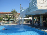 По поводу еды сказать плохого ничего не могу. Конечно, в сравнении с тем же Риксос ассортимент чуть меньше, но тоже достаточно разнообразен и на любой вкус. Я вообще не ем соль, поэтому для меня пожелание поварам было бы меньше солить еду, острое люблю, поэтому переперченность некоторых блюд меня радовала:) Хотя моя семья некоторые перченые горячие блюда есть не могла, и очень солеными даже для них показались первые блюда (борщ, супы). Мне безумно понравилась телятина, которая таяла во рту, баранина мягчайшая и очень вкусная, баклажаны в любом виде, да и вообще любые овощи в их приготовлении с ароматом востока были вкуснейшие! Индейка, курица, печень и куриная и индейки просто необыкновенные. Сладости вкусные, особенно после обеда в баре возле бассейна пончики в сахарной пудре или с корицей - сказочные! От такого изобилия еды просто невозможно не поправиться. Несмотря на утренние пробежки, длительные заплывы и в море и бассейне, мне приходилось ещё каждый день посещать фитнес центр, где на беговой дорожке по 30-35 минут бегала до десятого пота)) И всё равно привезла лишние килограммы...увы и ах! :(