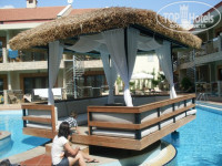 По поводу вечернего представления могу сказать, что мне не всё понравилось. Ребята аниматоры, конечно, стараются, молодцы: очень красивые костюмы, декорации, красивые постановки танцев, но вот камеди шоу мне не понравилось вообще, мы с подругой так и не поняли, где нужно смеяться, юмор был тупой, хотя немцы пожилого возраста просто ухахатывались, но, видимо, каждому свое :)) Почему я в начале отзыва написала наш возраст, вот лично для меня, мужа, моей подруги, моего ребенка вечером после амфитеатра было скучно, живая музыка не впечатляла, хотелось драйва, танцев, современных мелодий пусть даже в живом исполнении, а этого не было, к сожалению, а была степенная, мелодичная и практически колыбельная музыка, что дождаться дискотеки и потанцевать с отрывом (как я того люблю) было практически нереально, очень хотелось спать уже во время представления у бассейна. Только два раза мы дождалась дискотеки, где круто оторвались в ритмичных танцах, зажгли с аниматорами от души;))... вот тут и была экспрессия, драйв, в общем так, как я люблю!)) Я хоть не могу сказать, что очень молода, но вечерние представления были слишком скучны для меня. Хотя вот моей маме понравилось и она с удовольствием отплясывала под ретро мелодии)) Пару раз и я вместе с дочкой потанцевала под живую музыку, когда включали белые розы и касабланку) Все аниматоры очень доброжелательные и веселые ребята, безумно приятен в общении афроамериканец Ибо, он настолько располагает к себе, мой муж с ним сразу нашел общий язык, Полина (дочка) даже на память сделала несколько снимков с ним, он на пляже предлагает игру в бочу. А вообще все аниматоры очень активные днем, но при этом абсолютно не навязчивые! Мама, кстати, днем играла в волейбол и на пляже соседнего отеля (где браслетов нет) и на на нашем пляже, ей очень понравилось))
