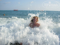 Отдельно хочу отметить аквапарк: ребенок просто не вылезал с горок, да и муж тоже:)) Они большую часть своего отдыха были именно в аквапарке, горки действительно суперские и экстримальные! Я сама раз 6 каталась на них, очень понравилось, но для меня предпочтительнее, конечно, море, где я плавала часами. Лежаков всегда и в любое время можно было найти достаточно много свободных, в этом не было никаких проблем, пляж чистый и удобный, где стоят лежаки - песок, а уже при входе в море - галька для массажа стоп) Вход в само море очень удобный и не проблемный, как некоторые пишут. Я, почитав отзывы, думала даже купить тапочки, чтобы не поранить ноги о камни, но здесь такого не было, вход плавный и камней острых не встретилось. В том году я отдыхала в Риксосе, в Кемере, так вот там пляж был гораздо хуже и травмоопаснее! Я поранила там о камни очень больно ноги и приходилось плавать в целях безопасности только с пирса.