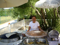 Помимо завтраков обедов и ужинов у бара на пляже с 12-00 до 16-00 ежедневно на огне готовят вкуснейшие лепешки гезмеле.
