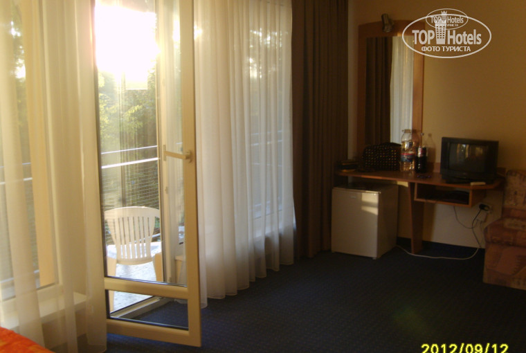 нормальная болгарская трёшка-достаточно чисто, приличное обслуживание. Море минут семь прогулочным шагом. Хороший сейф. Брала одни завтраки-думаю, что для Болгарии вполне достаточно, хотя еда в отели вполне хорошая иногда можно заказать ужин и в баре, мне больше нравилось ходить по разным кабачкам, которых там превеликое множество, если идти налево, а вот если направо есть один там кабак AM RING-четыре минутки ходу от отеля через дорогу и чуточку наискосок в лесочке напротив отеля Дольче Вита-очень дешёвые цены. Курорт очень маленький, поэтому не бойтесь что отель на отшибе-рядом всё. Остановка на право-на Варну....Ужин примерно 10 евро. Погода в сентябре было и +19 и +28 как повезёт. Для приверед скажу, что в номере мало розеток и бассейн маловат и на балконе не отдохнешь, потому что они так устроены, что отдыхать тогда уж надо всем этажом (фото). Впервые столкнулась с тем, что экскурсии на улице сильно отличаются от купленных у гида и дело не в ценах - понятно, что они ниже, а вот содержимое….на улице просто самопал, так что в Болгарии советую не экономить и покупать у гида. Сама страна не понравилась-смотреть особенно нечего, цены особенно на пляжах ого –го, а грязь…в Гоа просто стерильно если сравнить. Черное море тоже не порадовало, ну сентябрь понятно. Солвекс как всегда сработал на отлично. Отдохнуть, конечно в Болгарии можно, но по моему одного раза достаточно, даже при полном позитиве всё таки это БОЛГАРИЯ. Всем приятного отдыха.