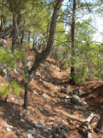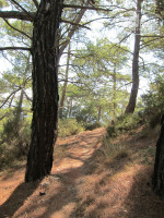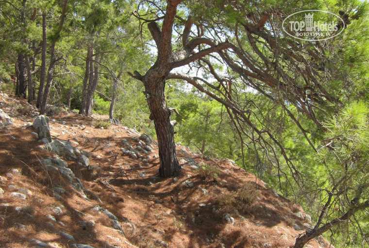 Для тех, кому интересно подняться, найти тропу просто. Выходите из отеля, переходите дорогу, поворачиваете направо, доходите до перекрестка, поворачиваете налево, идете метров 200 (справа от дороги лимонные сады, слева гранатовые). Справа от дороги будет указатель, что Кемер 5 км с он указывает на тропинку вдоль лимонного сада. Далее по всей тропе есть красно-белые метки, идете по ним, заблудиться невозможно. Это не единственная тропа, видели и другие метки (крест) как поняли, это более сложный маршрут (более крутой подъем). По пути туда вообще никого не встретили, только, когда тропа уже вышла на дорогу, которая ведет к вершине, стали встречать людей, в основном немцы (пожилые), наших существенно меньше, как мы поняли, они шли из Кемера, а не из Кириша. Виды прекрасные! Воздух протитан сосновыми ароматами, просто съедобный какой-то! По склонам растет много земляничных деревьев, лавровых кустиков, очень чисто. Мы поднимались очень спокойно, с остановками, по времени заняло где-то часа два, спустились часа за 1,5. Рекомендую обуваться в закрытую обувь, в шлепках будет неудобно (камни, опавшая хвоя), я была в закрытых коралловых тапочках, было удобно.