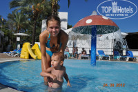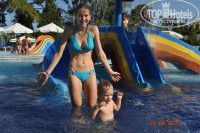 Привет всем! До того как сюда поехать читала много отзывов об этом отеле и хороших и плохих. Хочу поделиться своими впечатлениями. Прилетели рано, в отеле были в 11 часов утра. Расчетный час с 12 часов. Те кто хотел подальше от шумихи поселили сразу. Я попросила наоборот поближе, попросили подождать. Мы ждали до 14 часов. За 3 часа ожидания мы прогулялись по отелю, успели на поздний завтрак, потом пошли на обед. Затем нас поселили в номер как я и хотела на 2 этаже поближе ко всему (без бакшиша). Как я бы оценила отель в раскрытом виде: - размещение 5, уборка номера 3, питание в ресторане и на всей территории отеля 5, детское меню 4, обслуживание официантов 5, уборка территории 5, работа садовников 5, анимация 5, дискотека 3, пляж 4. В итоге я поставила общую оценку отелю 5. Рекомендую отдыхать семейным парам с детьми. Контингент был таковой, русские, украина, французы, немцы, турки, англичане,испанцы, итальянцы (по убывающей). Анимация велась на русском, английском, немецком и французском днем. Вечером на 8 языках. Было весело всем. Какие минусы - это холодная вода в детских бассейнах. Многие детки болели, в основном кашель и насморк. У многих подымалась температура. Уборка в номере мне не понравилась, так как под кроватями не мыли было много пыли ( соска постоянно улетала под кровать, поэтому приходилось это созерцать), столик на балконе ни когда не протирали. Шампунь ,гель для душа берите с собой, т.к за все прибывание нам дали два маленьких флакончика шампуни на один раз помыть, и маленький кусочек мыло и ВСЕ. Фен есть чтоб посушить лысину, но не длинные волосы. Дискотека тоже не важная, есть с чем сравнить, это конечно зависит от дисджея, была "русская" дискотека ни одной русской песни, мы подходили, мы просили, игнор..... Одна долбежка, даже моей дочке 16 лет не понравилось. Анимация СУПЕР! Всем большое спасибо за развлечения!!!! Об этом можно писать много и долго. Погода была очень хорошая. Днем + 29 +30, вечером +26, температура моря +28. Но в начале октября начались грозы в основном вечером. Днем хорошо и тепло. Так что всем приятного отдыха и хорошего настроения! От вашего настроения зависит ваш отдых!