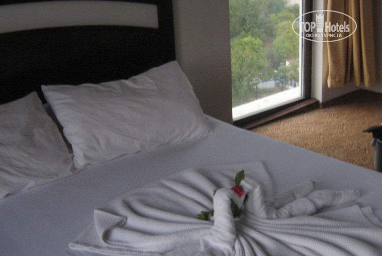 Ездили в сентябре с подругами. Это была наша первая поездка в Турцию и в другую страну вообще. Прилетели после 12ти ночи. Заселили сразу же, заселили в номер с 2мя балконами и с видом во двор и конечно же горы! работнику Emrah благодарность! И вообще персонал доброжелательный, вежливый, всегда желают приятного аппетита за едой, здороваются, несут чемоданы...вообщем обслуживание хорошее. В номере кондиционер, номнр убирали почти каждый день, когда доллар ложили, когда не ложили. Сейф не брали, вещи не пропадали. Еда...Каждый бед и ужин давали сладкое, много курицы в разном виде, фрукты, овощи, салатики, рыбка. Завтрак легкий, без мясного..салаты и колбаса соевая, сыр-брынза..... спасибо повару Султану - все было вкусно! По еде претензий особых нет. Вино местное красное мне не понравилось, белое нормально. Один раз пила коктейль - он не особо. Пляж..на маршрутке добирались, иногда пешком. Пешком идти интересно - смотришь на красивенные отели, магазины, ухоженные улицы. Экскурсии у тур оператора лучше не брать - дорого! Мы нашли самое дешевое местное агенство, в пару шагах от нашего отеля. TGI, если не ошибаюсь. И! Берите экскурсию на яхту (всего лишь 14 долларов на целый день, а впечатлений уйма!)