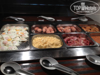 Из еды мы брали только завтраки, как оказалось не зря. Потому что отзывы об обедах и ужинах не положительные (от гостей отдыхавших с нами). На завтраке есть все, что и должно быть: сухие завтраки, яйца двух видов,бекон, сосиски, помидоры, огурцы, сыр, ветчина, масло. маргарин,йогурты, грейпфрут, апельсин и арбуз. Наивкуснейшая выпечка и джем четырех видов. Кофе чай, какао, соки. По-моему все стандартно. Бегали два котенка, но на столы не лезли, ждали добрых бабушек))).