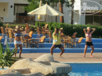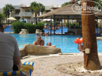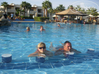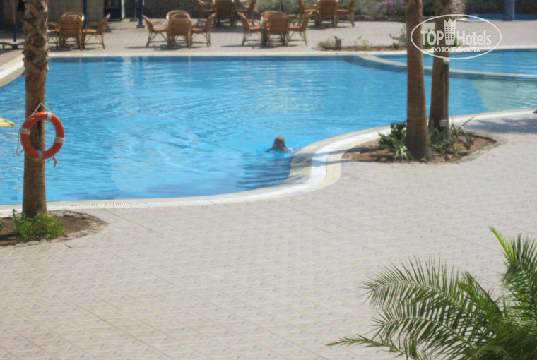 На территории 2 бассейна . Плавать можно в бассейне ,что возле сцены, до 2400 ночи.Возле каждого бассейна есть барчик,но только в одном давали спиртное.Барчик был и на пляже,там выпивки нет,только напитки и еда.