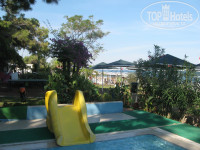 Расскажу о том,как наша маленькая семья(я,муж и доченька 1,3мес) отдохнула в этом отеле.Так получилось,что наш рейс перенесли и мы попали в отель около часа ночи,нам дали ключи,сразу принесли детскую кроватку и предложили спуститься в ресторан поужинать.Это было очень приятно.Так как было темно,то мы только наутро увидели,насколько прекрасен вид из окна,сосны не позволяют номеру нагреться,всегда прохладно.Территория ухоженная,инсталляции из металлических скульптур,которые делает хозяйка отеля,придают определенную креативность,это гораздо интереснее,чем монументальные гипсовые львы в 5звёздочных монстрах(рядом отель Империал с такими зверюгами).