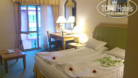 Прекрасный отель! Очень красивый, уютный, большой (но нет ощущения «переполненностью людьми», все как-то равномерно распределяются по пространству отеля). Интерьер отеля торжественный – высокие колонны и пальмы в главном фойе, бронзовые скульптуры, картины, и вместе с тем, есть много уютных «уголков» (столик+диванчик+кресла), где можно удобно устроиться небольшой компанией. Очень красив «Бар-терасса» с высокими стеклянными (с классическим переплетом) стенами и дверями. Вся мебель в отеле выдержана в английском стиле, с состаренным беленым деревом. Красивейшие лампы и светильники. Глаз радуется!
