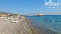 Территория ухоженная. Есть «зона у бассейна», «зона у моря» и «зона парка». В парке сосны, гамаки, и покой. На море пирс, навесы, лежаки с уже разложенными матрасами (не везде это), индивидуальные бунгало. Душ у моря – сразу несколько штук – не надо толпиться или стоять в очереди. Спусков к морю три. У бассейна дивные деревянные лежаки – широкие, удобные, с подлокотниками. В бассейне есть ступеньки. Еще бы перилку бы одну поставить – и было бы совсем замечательно! Тогда бы и пожилым и людям и инвалидам было бы легко самостоятельно пользоваться бассейном.