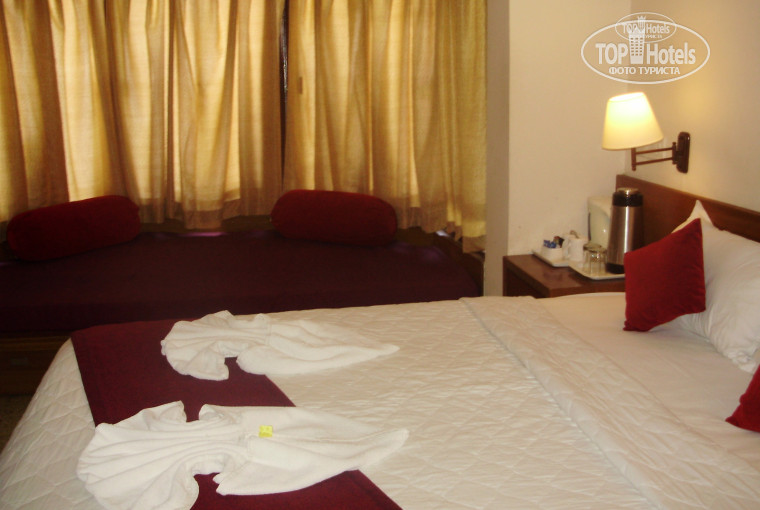 На территории стоят симпатичные виллы в португальском стиле, номера категории Standart вполне приличные, санузлы только после ремонта. По запросу ставят дополнительную кровать. До пляжа 1 минутку пройтись. WiFi в отеле нет, в бизнес-центре можно воспользоваться компьютером, где есть проводной интернет, стоимость 500 рупий за пол часа. Пользование сейфом бесплатно на ресепшен.