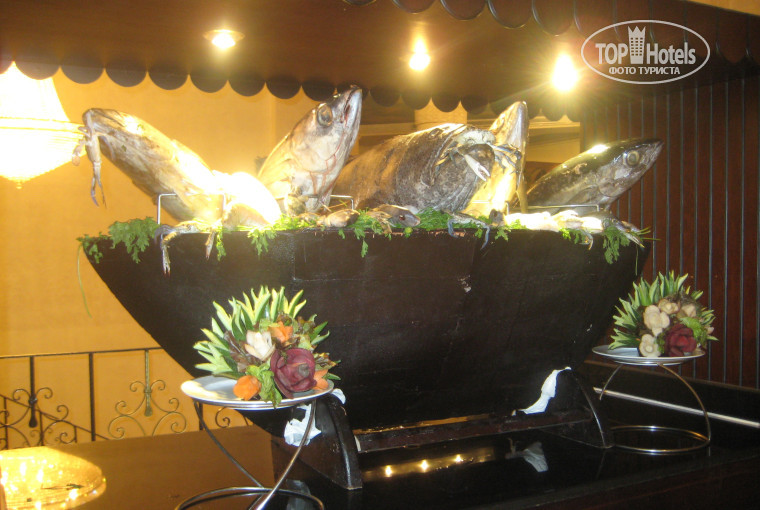 Питание: Основной ресторан на рецепшн, есть гриль бар около Релакс пляжа, бар на пляже. Что сказать, голодными не останетесь, но и изысков не найдете. То есть сначала все кажется вкусно, сладости, мясо, разная рыба, овощи, гарниры – глаза разбегаются! Но как, собственно, и везде в Египте – еда пресная. Соли, перчи – не помогает. И где то через неделю дико хочется селедки, сала, борща и воблы. Умные люди с собой привозили и воблу, и икру красную, и даже семечки! Фруктов было всегда много, финики, дыня, гуава, апельсины, бананы, виноград, чего там только не было. Сладостей тоже очень много, салатов хватает, овощи хочешь свежие, хочешь на пару, хочешь в кляре. Еды много. Есть платные фреши (2-3$), просто сока нет, напитки типа Юппи, Нести лимонный и персиковый, есть каркаде. Обстановочка, правда, так себе, старенькие скатерки, еще более старенькие салфетки. Не на всех столах есть приборы. Зубочистки носите с собой, там их не найти). Около бассейна пекут лепешки с начинками, картошка, мясо, сыр, на выбор (правда мы так и не определили в какое время) – вкусные. В баре на пляже – малосъедобная картошка фри, такое ощущение, что ее пожарили неделю назад. Булочки, что-нибудь мясное (печень, почки или говядина), брокколи в кляре, макароны, а также вечно пустой лоток с надписью «бургер с говядиной» - их надо реально караулить, мне достался только один раз. Овощи в отдельном холодильнике. Бар с напитками открывают в 10-00 и там сразу образовывается очередь. Вечно кончается пиво (что неудивительно при таких объемах потребления!), но его быстро подвозят, ждать буквально 15 минут. Гриль бар это вообще отдельная песня. Там дают очень вкусные вещи, кальмаров на гриле, курицу, даже крабов давали. Это помимо всего остального, супчика, овощей, гарниров, итд. Но травились, почему то все именно там. Подозрение на то, что там все недожаренное, народу очень много, они не успевают обслуживать такое количество, отсюда и отсутствие качества. Столов вечно не хватает, так как от пляжа ближе до гриль бара, чем до рецепшн и народ предпочитает обедать там. Отравлений в отеле очень много. Сужу не только по себе и своей компании, все ходят в обнимку с «имодиумом» - больше ничего не помогает, никакие аналоги. Есть еще ночной ресторанчик – там можно есть ночью. На него пожаловаться не могу, там выбор блюд, конечно, маленький, но если вас разобрал голод ночью – то очень даже вкусно. Есть три ресторана а-ля карт, китайский, итальянский и французский. Если приехали на 10 дней – то можете посетить какой то один из них по записи. Мы были в китайском, нам очень понравилось, очень все было вкусно. Так же есть рыбный ресторан, он платный. О нем очень разные отзывы, кто говорит, дорого, кто говорит – невкусно. Нам было очень вкусно! Правда, обслуживание так себе – очень долго ждали возможности заказать блюдо, а потом не менее долго, когда унесут грязную посуду.