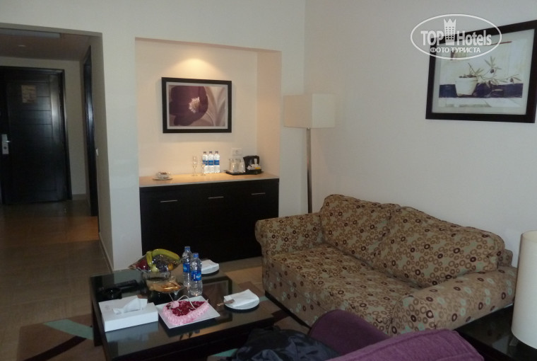Мы попали под акцию «Медовый месяц». Как и было обещано нам предоставили отдельный трансфер из аэропорта и в аэропорт. При покупке тура мы бронировали номер Делюкс, нам его заменили на Джуниор Сьют (огромный номер с гардеробной, громадной ванной комнатой (в ванне был шампунь, зубная щетка, паста и т.д.), зона гостиной, барная зона, два балкона с видом на бассейн и море, огромнейшая кровать). В номере по приезду нас ожидали фрукты, торт, сладости, бутылка шампанского, очень красиво украшенная кровать. На следующий день нам предоставили завтрак в номер. Также в подарок от отеля был ужин в шикарном ресторане на старом ресепшене. В номере есть минибар который обновляется ежедневно.