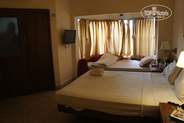 Что касается отеля. Вполне отвечает требованиям 3-х звезд. Приехали в отель мы около 6 часов утра. Заселили нас около 10 утра, предварительно немножко пошантажировав- мол, ваш супериор освободится только в час, а вот номер в бунгало свободен, но надо доплатить 180 долларов... Вежливо посланные, не обиделись, предложили оставить вещи и идти завтракать. Итак, номера. Супериор побольше, за счет эркера, в котором стоит третья кровать, и маленького санузла. В бунгало санузлы ощутимо просторнее, но сама комнатка крошечная, если ставить третью кровать, остается узенький проход от двери к туалету. По состоянию и номера супериор, и в бунгало примерно одинаковы- давненько не было ремонта, да и ежедневный уход оставляет желать лучшего. Но кондиционер, душ и унитаз работали без нареканий, телевизор показывал больше 40 каналов (правда, ни одного русского), полотенца, чай-кофе и питьевую воду меняли регулярно. А то, что пыль в шкафу не вытиралась со времен Альбукерка- чтож, это Индия...