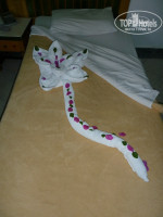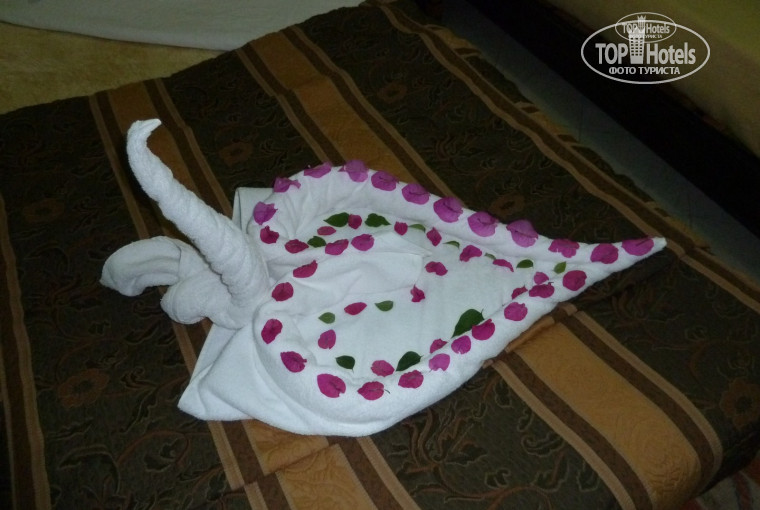 Убирались не каждый день, просто мы их об этом не просили. За всё время оставили только доллар, а композиции сделали аж три разные, достаточно прикольные. В прошлые посещения в "пятёрках" за как минимум пять раз оставленные по доллару сделали всего одного банального лебедя и какой-то непонятный цветочек возле ванны. Мелочь, а приятно)