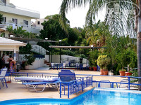 Спокойный, тихий отель в местечке Калитхея недалеко от г. Родоса и Филераки, рядом автобусная остановка. В "шаговой доступности" есть 3-и супермаркета, несколько таверн, аптека, магазины, прокат автомобилей. Сервис отеля нас полностью устраивал, замечаний нет. Персонал очень доброжелательный. Мы выезжали из отеля после обеда, хотя нам обед не полагался, но нас покормили. Многие сотрудники отеля говорят по-русски, правда, некоторые из них говорили очень плохо, но все равно понимали нас. Питание в отеле восхитительное на 5+. Блюда менялись каждый день. На завтрак были яичница, омлет, мюсли, сладкое, пирожные, чай/кофе, бисквиты, печенье, каша, сыр, колбаса. На обед/ужин суп, мясо, рыба, гарнир на выбор: овощи или макароны, вино, пиво, крепкие напитки (на ужин). Впервые в жизни попробовала мидии. Из фруктов: персики, виноград, дыня, арбуз, яблоки, апельсины, сливы. Хочу предупредить любителей грибочков, селедочки и соленых огурчиков, в отеле они в меню не включены, вы найдете их только в супермаркете. Территория не большая, но очень уютная, много зелени, за которой следит садовник. Есть 2-а бассейна (для взрослых и детей). Около бассейна можно взять напитки до 16-00 (безалкогольные бесплатно), мороженое и печенье. Т.к. отель не большой, по-этому отдыхающих на территории мало. Пляж муниципальный в тихой спокойной бухте, вход в море мелкая галька, но быстро к ней привыкаешь. Море идеально чистое и теплое. Топчаны платные: синие 3 евро, белые 5 евро, оплату собирают около 11 часов дня. Мы хитрили: с утра и после обеда лежали на топчанах, а в промежутке на гальке. Вечером ходили на дискотеку в соседний 5* Альдемар, иногда оставались на представление, никто не выгонял, но большей частью развлекали себя сами экскурсиями и пешими прогулками. Пытались попасть в аквапарк (говорили, что он один из лучших в Греции), но нам не повезло. Всех предупреждаю: в воскресенье аквапарк не работает!