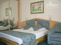 Одноэтажные здания – это стандартные комнаты без балконов. В каждом номере есть телевизор, фен, сейф, шкаф, трюмо, чайный уголок (не пополняемый, можно взять пакетики с чаем-кофе-сахаром за 15 шекелей=120 руб.). Вид из окна - во двор, на деревья и растения.