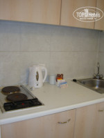 Трёхэтажное здание – на первом этаже есть 5 сьют. Диван, телевизор, пуфик-раскладушка, шкаф, который разделяет комнату условно на две. Двери между комнатами нет. Стоит современная кровать, 2-ой телевизор, прикроватные тумбочки. Далее идёт кухня – микроволновка, 2-х конфорочная плита (посуда за доп.плату ок.50 шекелей=400 руб.), холодильник. Ванна. Дизайн номеров вполне современный и выглядят они на все 100%.