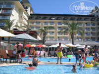 Море отвратительное( Очень люблю Турцию, была в разных отелях, но такого моря не видела. Купались, точнее стояли в море по пояс, т.к дальше зайти или поплыть мешают огромные камни, валуны по поторым чертишь коленками когда плывёшь. Кошмар! Исходя из этого лежаки около бассеина занимали в пять утра, если не займёшь, то места не будет. Территория конечно маленькая, но это и не Риксос.