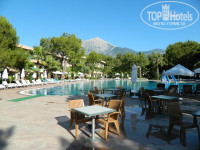 Начнем. Семья 2 взрослых и 1 ребенок 5 лет. Первое впечатление конечно оставляет тур оператор - у нас это был TEZ - молодцы и большое им спасибо за хорошую работу. Встреча в отеле была нормальная. Я попробовал сразу договорится о номере в Гардене за 50 баксов, но парень на смене затребовал 300 после чего был послан в далекую даль. Мы решили заселяться в наш стандарт. Зашли, посмотрели, ну в целом не плохо. Не смотря на мелочи: такой себе ремонт, маленькая доп. кровать. Так как приехали утром, побежали кушать и сразу на море. КОГДА ВЫШЛИ ИЗ КОРПУСА НА ТЕРИТОРИЮ БЫЛИ УДИВЛИНЫ НА СКОЛЬКО МНОГО ЗЕЛЕНИ!!! Это очень важно чтоб по дороге на море была тень, особенно с маленьким спиногрызом и требовательной женой, да и самому приятно. Дорожка на море проходит через детскую площадку, бассеин и тут не доходя до ступенек ведущих на пляж мы застыли. В Турции мы не первый раз, но ощущения когда перед тобой красивенное море и ухоженный пляж а за спиной зеленющая територия, большой бассеин, горки, бар и в целом концепция УЛЬТРАВСЕВКЛЮЧЕНО - джек пот! Подобного сочетани красоты територии, морской инфраструктуры (чистое море, чистый пляж, удобные и целые лежаки со столиками, душ, раздевалки) и хорошего настроения мы не видели давно.