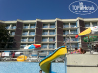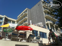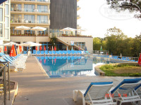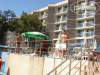 Территория отеля не большая, но всё с умом. 3 открытых басейна 1 закрытый. Тренажёрный зал за отдельную плату.Лестницы, по которым ходили по 10 раз в день (вместо тренажёрного зала). Около отеля стояла женщина-болгарка и продавада фрукты, постояно покупали ребёнку.