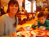 По питанию: вкусно, разнообразная кухня. Всего много. У нас ребенок плохо ест, но и он для себя нашел еду по-вкусу. На завтрак была каша, всякие колечки-звездочки, которые заправляются молоком, запеканки из творога, из яиц, сосики, картошка, нарезки, фрукты, печеное, соки....На обед: два вида супов, несколько гарниров, курица, плов (настоящий узбекский!), салаты, соленья, свежие овощи, соки, фрукты, печеное. Рядом барная стойка, для тех, кому по крепче.... Персонал дружелюбный. По ресторану нареканий нет. Читала предыдущие отзывы и не поняла, чем сервис не понравился? На ресепшене много народу только при заселении/выселении, работали две девочки - вот тут пришлось постоять минут пять, но это разве проблема?