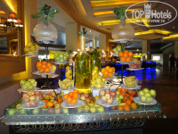 РЕСТОРАНЫ и БАРЫ. Отель работает по системе «все включено» - что дает возможность питаться с раннего утра и до поздней ночи (с 7:00 до 2:00). В феврале работало 3 ресторана (основной и два по резервации вечером – Итальянский и Азиатский) и несколько баров: «Витамин бар» в фитнес-центре (здесь с 10.00 до 17.00 можно попить свежевыжатые соки), «Лобби бар» на первом этаже (где с 10.00 до 24.00 можно заказать кофе - каппучино, эспрессо, турецкий со сливками, латте, коктейли и прочие напитки), бар на улице (при хорошей погоде). Качество приготовления блюд – превосходное, как и их разнообразие (особенно овощей, десертов, блюд из курицы и закусок). Из мяса всегда – курица в разных видах, 1-2 вида рыбы (Сибас на гриле, филе белой рыбы на пару, рыба с овощами), индейка, телятина в овощах, редко баранина. Не было свежей клубники (разве что на десертах), лобстеров, креветок, красной и черной икры, крабов и прочей морской живности, которыми богата Азия (некоторые туристы этим были не довольны). Из фруктов – гранаты, ананасы, яблоки, груши, апельсины, грейпфруты, бананы, лимоны. Ресторан всегда радовал чистотой, разнообразием блюд, доброжелательностью и оперативностью персонала.
