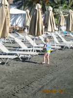 Море правда далековато, метров 600, через дорогу, об этом мы узнали по приезду в отель. Он на второй линии, по началу расстроились, а потом не напрягало, дорогу переходишь по светофору, кнопку нажал и вперед. Пляж, как и везде муниципальный, 2 лежака и зонт 5 евро, мы не брали, загорали на полотенцах и матрасе надувном(с собой привезли), мы на море были или до обеда или после, часа по 2. Море где мы купались само мелкое, надо пройти 10-20 метров, но с ребёнком самое он, серый песок. Не далеко пляжи с галькой там по глубже.