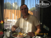 Номер был большой, с тремя кроватями(две сдвинуты и одна отдельно), диванчиком, балконом с стулья и столик, холодильник и плита электрическая( мы не пользовались), фен и бесшумный кондиционер с пультом, телик. Вид отличный на горы и огни города, ночью очень красиво! Сидишь, пьешь спиртное и любуешься видом, рай!!!