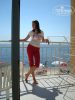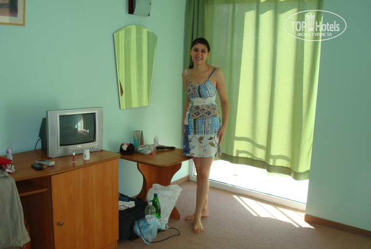Столовая простенькая, на 3 звёздочки. У нас были включены только довольно однообразные завтраки. Обедали и ужинали мы в городке. Стоит отметить что главный вход отеля упирается прямо в одну из главных улиц Поморья. Так что от дверей нашего номера до ближайшего магазина или ресторанчика идти не более одной минуты. Очень приятно по вечерам сидеть на балконе и наслаждаться поеданием вкуснейшей дыни или арбуза.