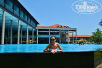 Территория небольшая. зато чистая. Есть 3 бассейна ( большой, маленький и детский) Для деток развлечений нету вообще никаких : ни горок, ни качель, ни детских площадок. Анимации тоже нету в отеле никакой - что было для нас огромным минусом, так как мы не знали чем себя вечером занять. Правда каждый вечер была живая музыка - но это так, посидеть послушать, поскучать , да и спать((.