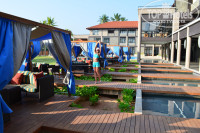 Сразу-же хочется сказать, что отель на 5* да еще и де люкс не тянет ( хотя и открыт после реставрации только в октябре). Как по мне, то здание мрачноватое и простоватое ( все в серых тонах) . Мне ооооочень хотелось добавить ему красок ! Хотя в целом все было хорошо. Очень долго нас везли из аэропорта в отель: 3,5 часа!!! Мы думали, что дорога такая дальняя, но оказалось нет: из отеля в аэропорт нас уже доставили за 1,5 часа!