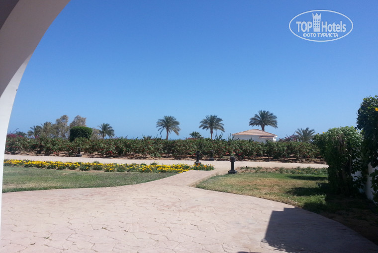 Территория: очень нам понравилась, красивая (зеленая, в цветах, ухоженная), большая, продуманная, с той точки зрения, что можно и провести время в окружении большого числа людей, и уединиться или совсем или небольшой компании: много каких-то уголков, отдельных бассейнов, раскинутых по всей территории... Хорошо! если не нравится ходить по лестницам к морю и обратно, можно доезжать до главного здания и оттуда спускаться на пляж на лифте.
