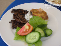 Питание в этом отели вызвало у меня мягко сказать шок, такого мизерного "шведского стола" я не видела не в одной стране и не в одном отеле. Выбор блюд минимален, ни о каком детском или диетическом меню даже речи быть не может, рыба очень сухая, то что жарят на гриле - либо сырое либо горелое, каждый кусочек который кладут на тарелку отрывают от сердца, утром круассан просто на вес золота-кто успел тот и съел, никаких свежевыжатых соков там нет, утром есть пакетированный сок, а в обед и на ужин только юпи, из фруктов были только резанные апельсины, дыни, финики. Из 3-х заявленных ресторанов работает только один, перекусить днем совершенно негде, никаких перекусов и чаев с печеньем нет, в баре на пляже бармен наливает сок ровно чуть больше половины стаканчика и с таким лицом, что второй стаканчик и попросить не захочешь.