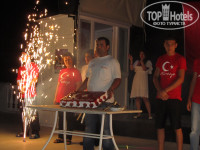 Ездили с мамой и сестрой. В принципе было весело,не скучали там. В пятницу была турецкая ночь, нам устроили очень приятный вечер, пригласив группу танцоров. И кроме того повара сделали большой и вкусный торт,который потом разрезали и разнесли каждому по столикам.))
