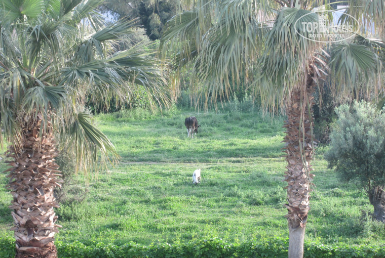 Нам достался 119 номер. Вход с террасы на 2 этаже, вид на бассейн, а вид из самого номера на лужайку за отелем, на которой паслись корова и козы)))