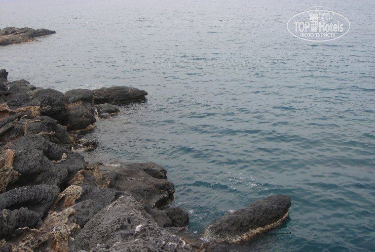 Начну с хорошего. Дивное расположение отеля, лучшее в бухте, черные скалы, фантастическое море, возможность уплывать на километры, за линию горизонта, никто и ничто не мешает (мы, впрочем, с сыном этим прославились, как выяснилось, больше никто далеко не плавал, копошились у берега).
