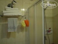 В ванной душевая кабина. Имейте ввиду, что есть номера с поддоном и занавеской. Сантехника чистая, всё работает, вода без перебоев и подмеса. Из банных принадлежностей только жидкое мыло. Полотенца меняли каждый день, кроме воскресенья, в одно из которых была Пасха.